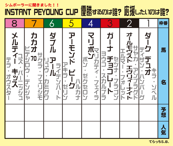 2/10(日)に行われました「バレンタイン・キッス ~第6回インスタントペヤング杯~」結果ぁーー。